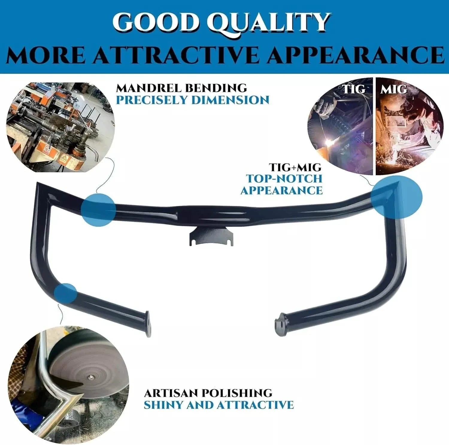 1. Tough and solid crash bar for protecting the bike engine and frame.
